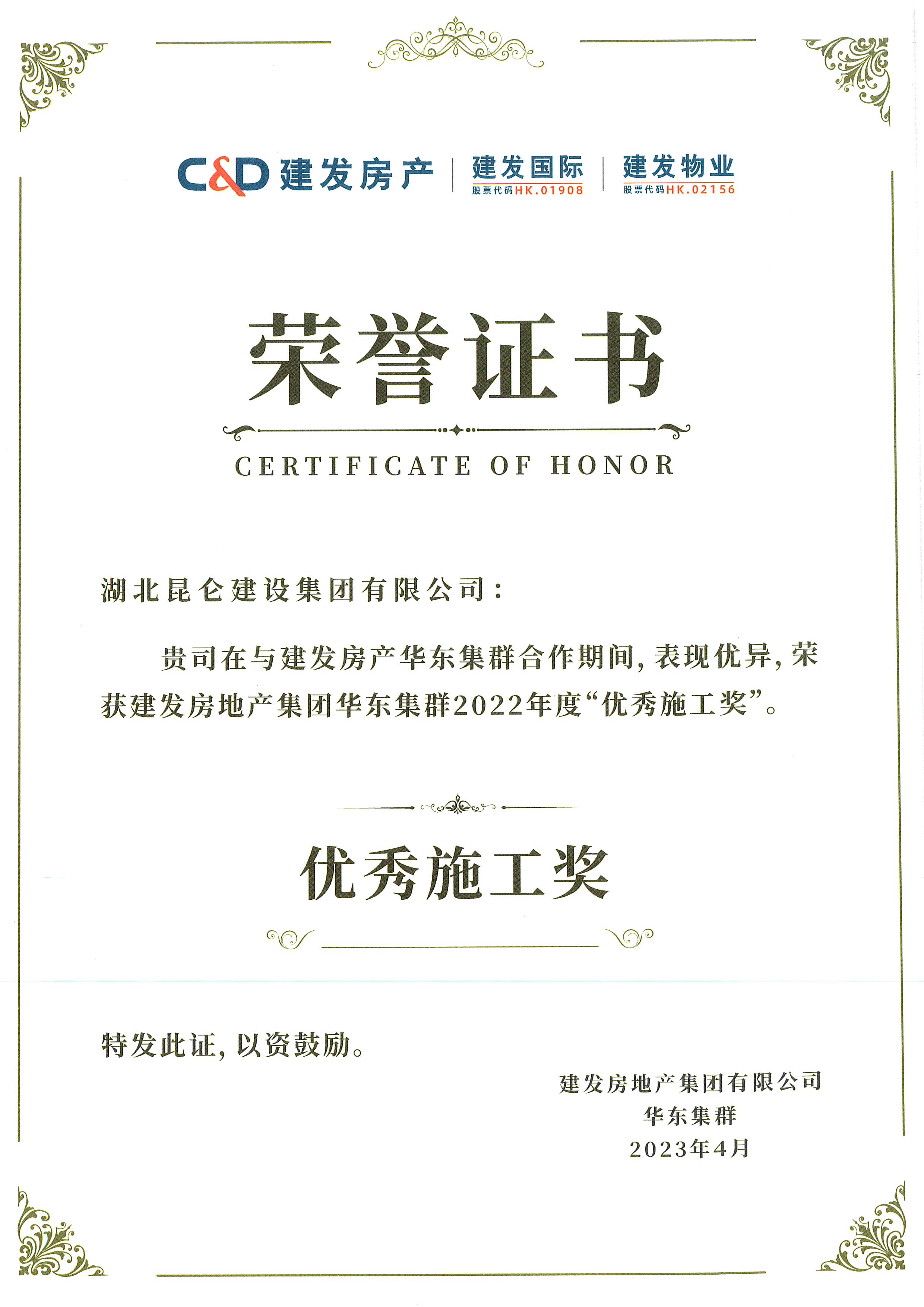 • 建發集團2022年度優秀施工獎