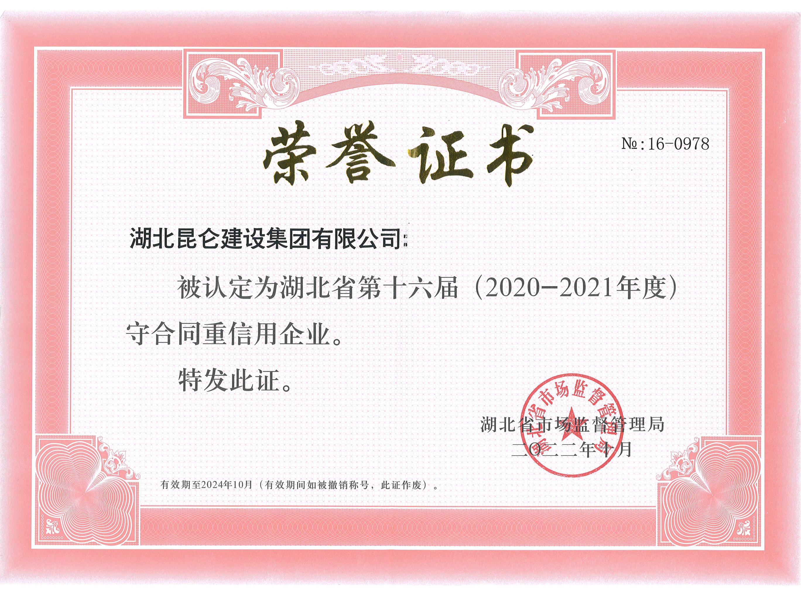 • 第十六屆2020-2021年度湖北省守合同重信用...